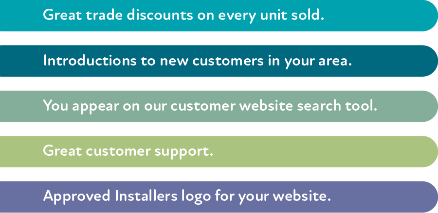 And you can join our Approved Installer scheme to receive free introductions to new customers, discounted products and exposure on our website.